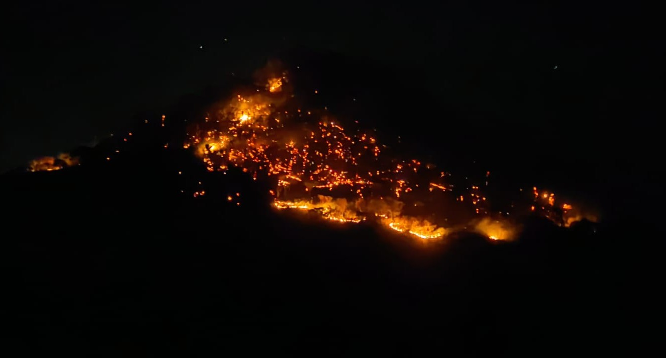 Fogo se alastrando pela vegetação do Monte Branco, 14 de setembro de 2025