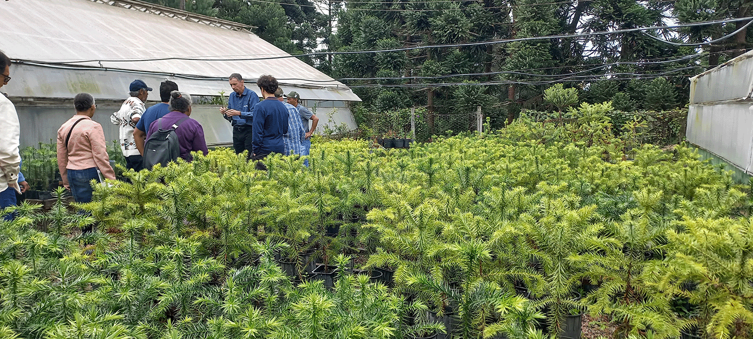 Colombo, PR - Em uma iniciativa voltada para o fortalecimento da cadeia produtiva do pinhão e a conservação da araucária, viveiristas do Vale do Ribeira, organizados pela Iniciativa Verde, participaram do curso "Enxertia e Formação de Pomares de Araucária para Produção de Pinhão". A capacitação foi realizada na renomada Embrapa Florestas, unidade da Empresa Brasileira de Pesquisa Agropecuária localizada em Colombo, Paraná. A atividade é parte do Projeto 21.693 - Potencializando viveiros e a inclusão socioprodutiva de frutas nativas no Vale do Ribeira com a Fundação Banco do Brasil.