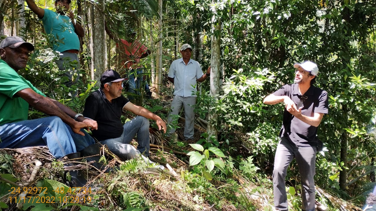 Visita técnica com participantes do Restaura Ribeira em área que será enriquecida pelo projeto. Bairro Cedro, Barra do Turvo (SP)