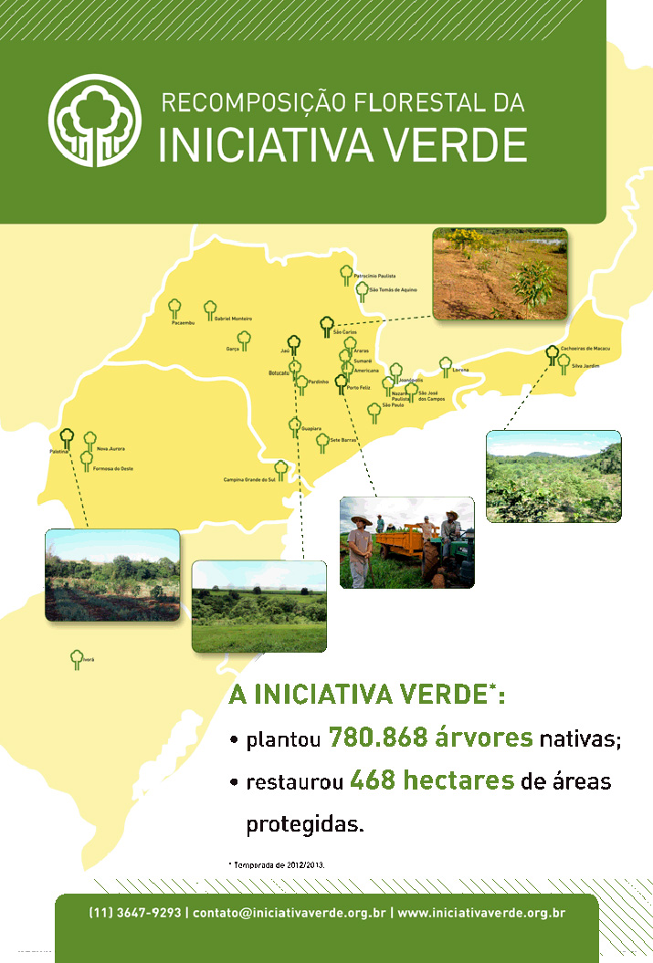 Desde a criação da ONG, mais de 780 mil árvores foram empregadas em recomposições florestais de áreas protegidas no Brasil. Este ano, a expectativa é passar o número de 1 milhão de árvores plantadas. Lembre-se que você também pode fazer parte desta história por meio dos programas Amigo da Floresta, doação de árvores, e do Carbon Free, onde as emissões de gases de efeito estufa são compensadas com o plantio de mudas. Veja, no infográfico, os principais locais de plantios feitos pela ONG Iniciativa Verde: