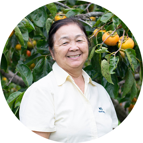 “Aqui, depois que chove sempre fica assim, branquinho. Mas quando dá tempo bonito dá tempo bonito”, descreve Fumiko, contemplando o céu nublado no final da tarde. O clima favorece a produção de caquis. Além do famoso Fuyu, visitantes encontram os tipos Coração-de-boi, Taubaté, Rama Forte e Chocolate. Ao todo, são mais de mil pés.