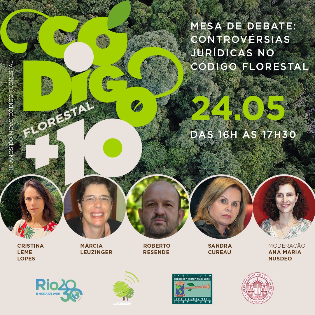 A mesa vai debater as controvérsias jurídicas presentes no Código, e conta, além de Resende, com Cristina Leme Lopes, que é gerente de pesquisa no programa de Direito e Governança do Clima do Climate Policy Initiative Brasil/PUC-Rio; Márcia Leuzinger, procuradora do Estado do Paraná em Brasília e professora de Direito Ambiental e de Direito Administrativo da graduação e do Programa de Doutorado e Mestrado do Centro Universitário de Brasília; e Sandra Cureau, Subprocuradora-Geral da República no Ministério Público. A moderação é de Ana Maria Nusdeo, presidente do Instituto Planeta Verde.