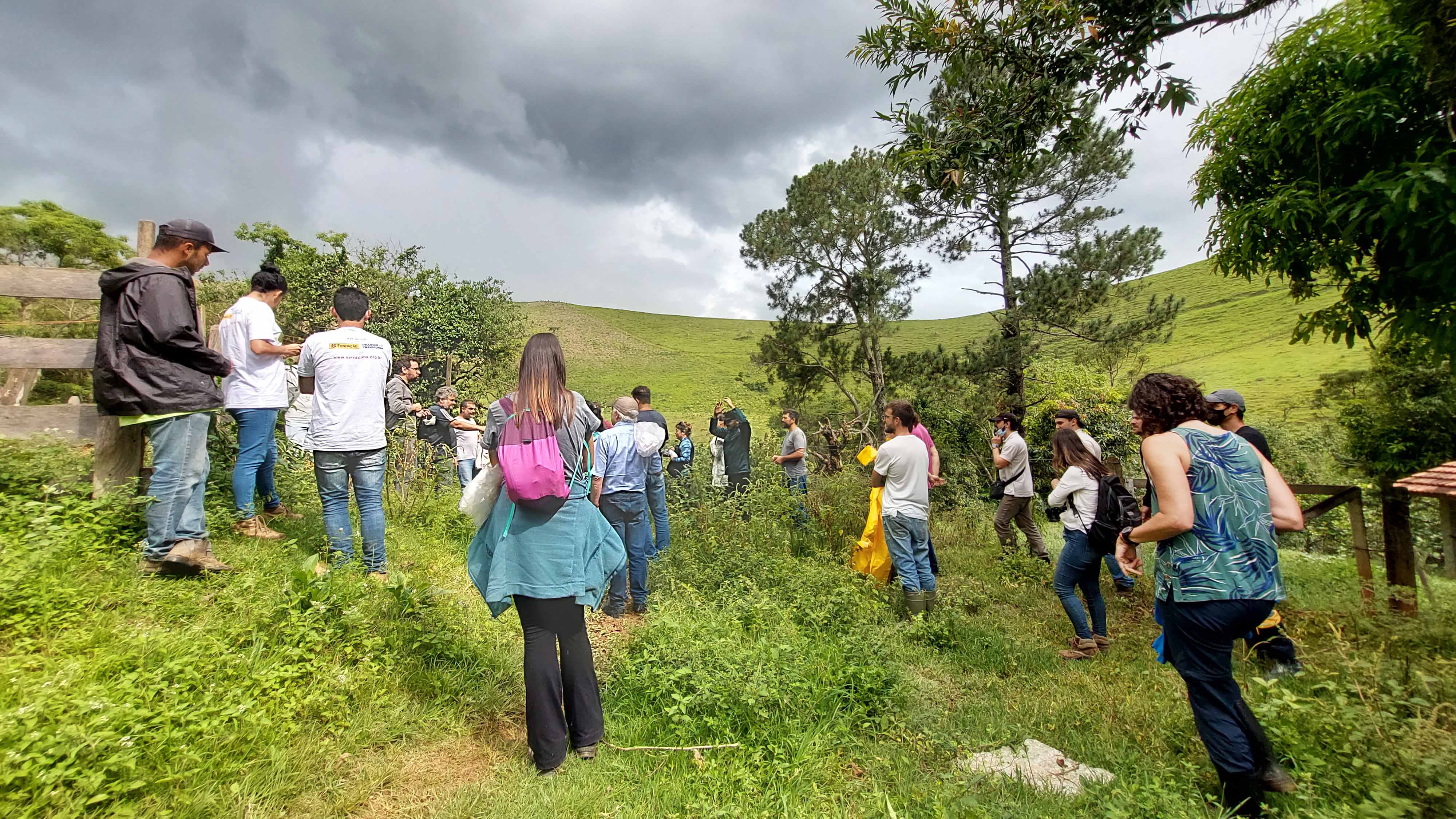 Também no mesmo dia, seu Alencar, dono de uma propriedade em Piquete (SP), onde estão localizadas áreas de restauração florestal da Iniciativa Verde, recebeu o evento para apresentá-las. O temporal impediu a visita completa, porém ótimas discussões foram feitas a respeito do tema da restauração, principalmente sobre o papel central dos proprietários rurais neste processo.