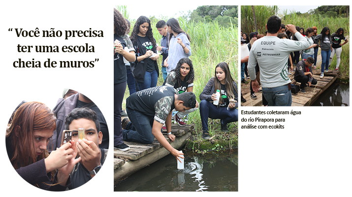 Alguns ali tinham um interesse especial na atividade. Letícia Oliveira, estudante do terceiro ano, escolheu como tema para seu Trabalho de Conclusão de Curso justamente o monitoramento do rio Pirapora em diversos pontos. “A professora falou para a gente escolher um tema com o qual a gente se identificasse, e a coisa que eu mais gostei de fazer foi monitoramento da água”, conta a estudante, que sonha em cursar Engenharia Ambiental.