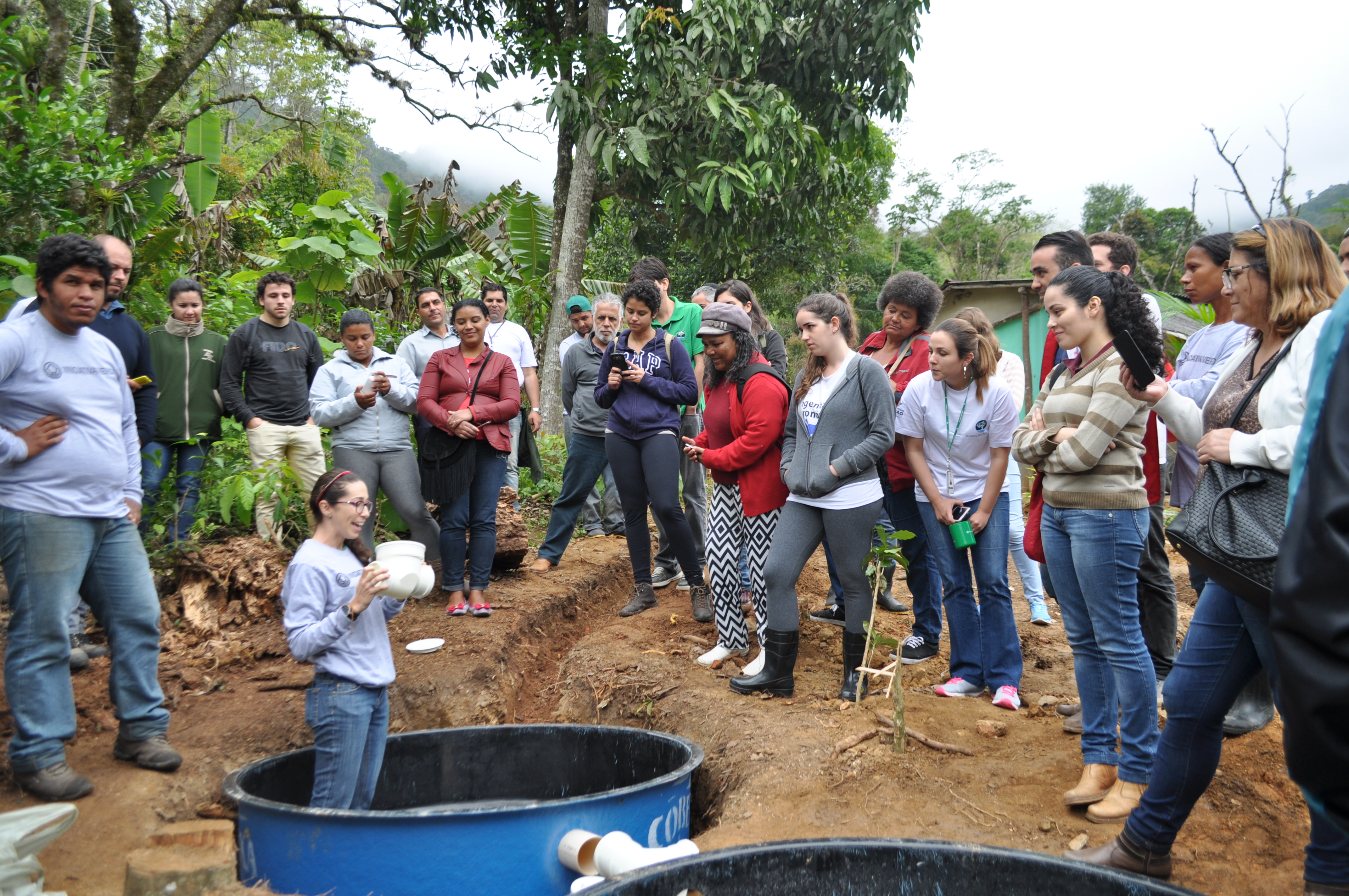 Mais de 50 pessoas se reuniram para participar da oficina sobre saneamento rural com tecnologias socais no dia 11 de outubro, no Núcleo Capelinha do Parque Estadual do Rio Turvo (PERT) em Cajati, sul do estado de São Paulo. Na ocasião, a organizadora e patrocinadora do evento, Iniciativa Verde, apresentou e montou uma fossa biodigestora e um jardim filtrante para a comunidade local, ambos modelos da Embrapa que foram empregados no Projeto Plantando Águas, finalizado em 2015 e que teve patrocínio da Petrobras. O objetivo do evento é buscar a continuidade do projeto, mas agora a ser realizado na região em questão, e mostrar para a população como tecnologias acessíveis podem preservar o solo e a água. Ou seja, há uma solução para substituir as fossas comumente empregadas, mas estas tão poluentes para o meio ambiente e insalubres para os moradores ou frequentadores do local em questão.