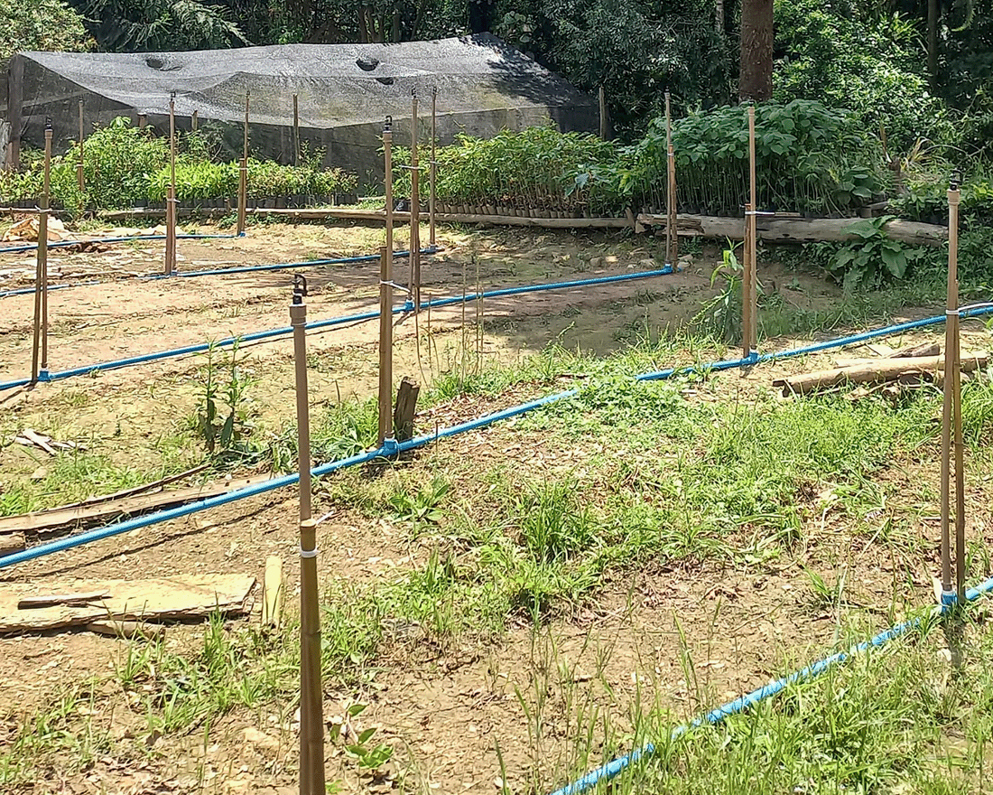 A implantação incluiu ainda a captação de água de uma nascente próxima, onde foi medida a vazão hídrica para abastecer o viveiro. Foram instaladas caixas d'água, bomba hidráulica e tubulação nos canteiros de mudas, o que vai otimizar o trabalho diário dos viveiristas.