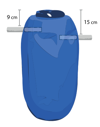 A conexão entre as bombonas é feita através de tubos de PVC de 100 mm (4 polegadas), que podem ser cortados no tamanho apropriado, conforme descrições abaixo, utilizando um arco de serra.