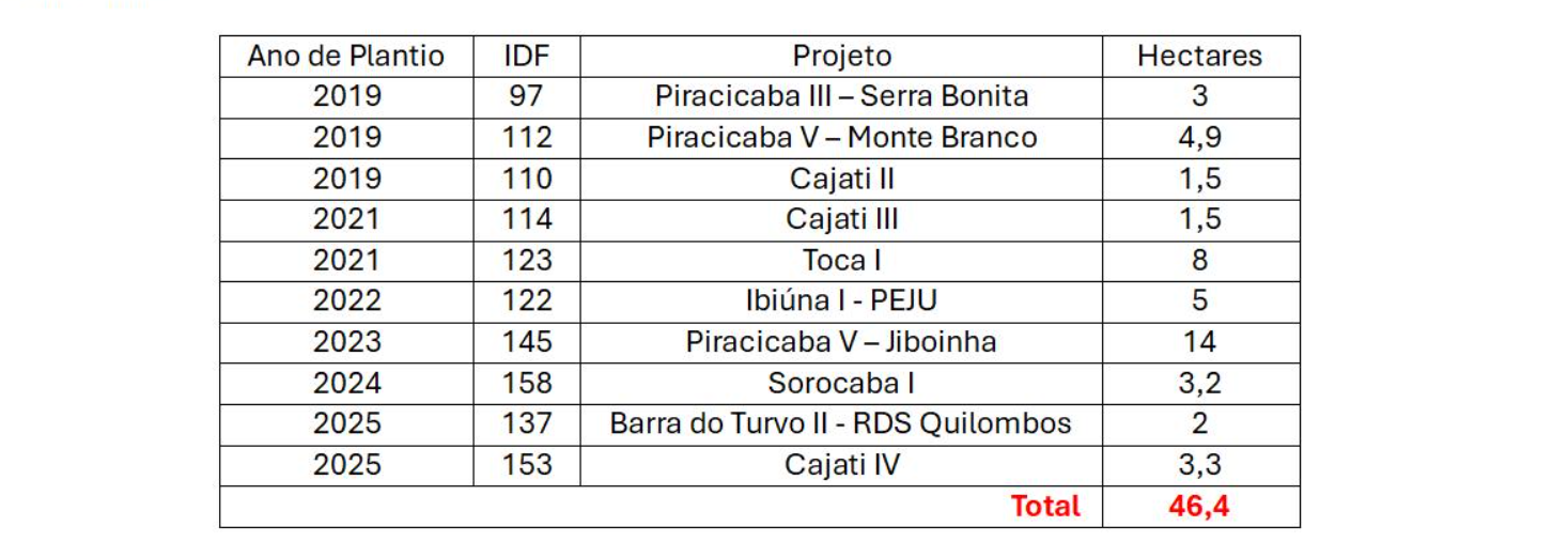 A partir de 2019 a Iniciativa Verde iniciou a implantação da metodologia de muvuca de sementes em seus projetos e de forma gradativa foi incorporando mais áreas restauradas com esta técnica. Até 2025, já foram restaurados por volta de 46,4 hectares exclusivamente a partir da muvuca de sementes.