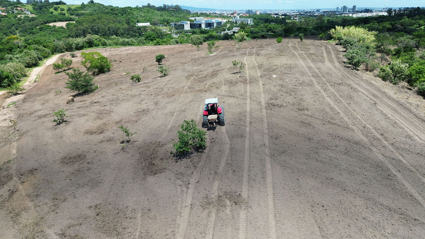 Já o plantio mecanizado, implantado a partir de implementos agrícolas como calcareadeiras, adubadeiras ou plantadeira de grão, permite a atuação em maior escala. Estima-se que em apenas um dia é possível plantar até 10 hectares. Neste formato, uma maior quantidade de sementes é aplicada, o que contribui com a recomposição do banco de sementes da área a ser restaurada. Sua principal restrição está relacionada às condições de relevo, uma vez que para as operações serem mecanizadas é necessário que o local de plantio seja plano.