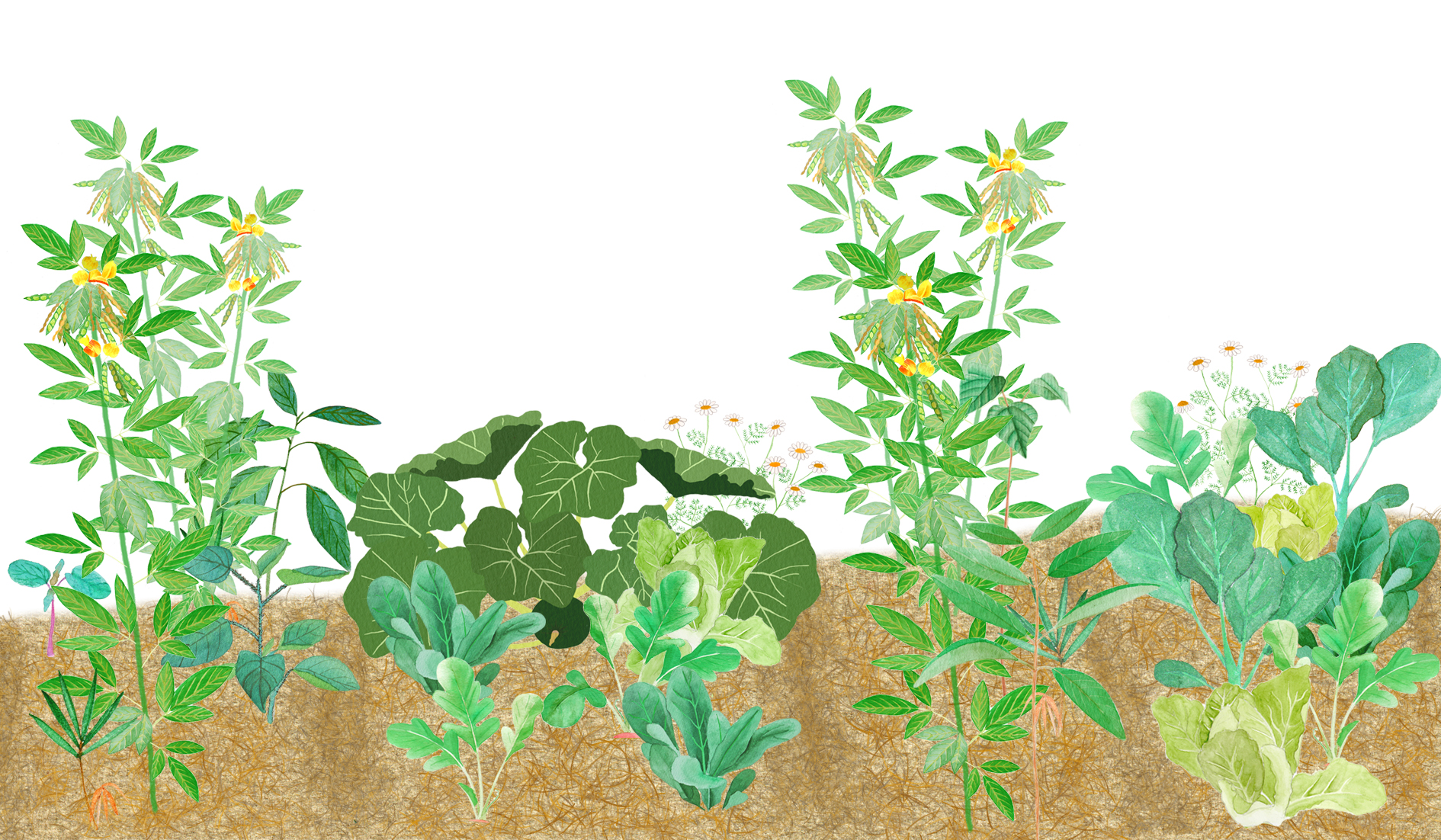 Cuidar de uma horta é muito melhor sob a sombra de uma árvore, não é? Mas as hortaliças precisam de pelo menos 70% de luminosidade, então, num SAF com horta as faixas entre as linhas de árvores permanentes devem ser calculadas de forma não atrapalhar a entrada de luz do sol nos canteiros. O guandu pode ser retirado apenas das “ruas” em que serão implantadas hortas, e mantido nas faixas que terão as árvores.