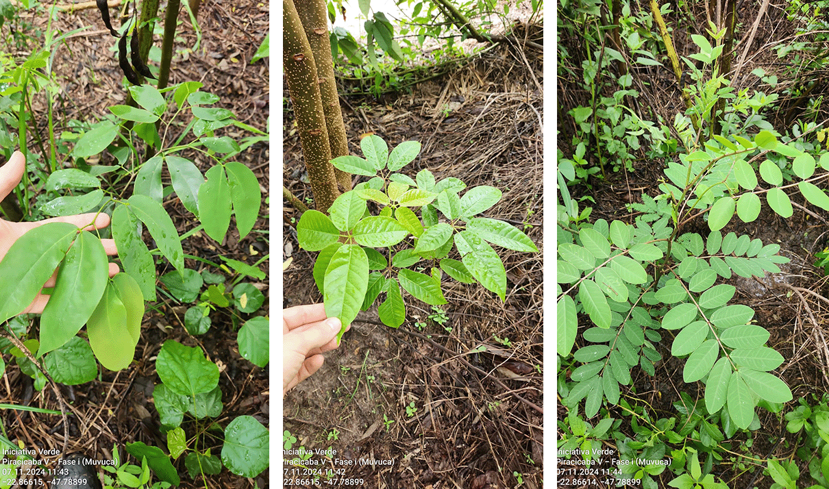 Próximo de completar dois anos do plantio da muvuca, as áreas de restauração do Programa Nascentes em Piracicaba (SP) apresentam resultados promissores. Diversas espécies florestais germinadas, como a boleira (Joannesia princeps), fedegosão (Senna alata), tamboril (Enterolobium contortisiliquum) e capixingui (Croton floribundus), já estão ultrapassando o feijão guandu em altura, demonstrando um crescimento vigoroso. Esta espécie de feijão é utilizada como um adubo verde, pois melhora as condições do solo para o desenvolvimento das espécies nativas.
