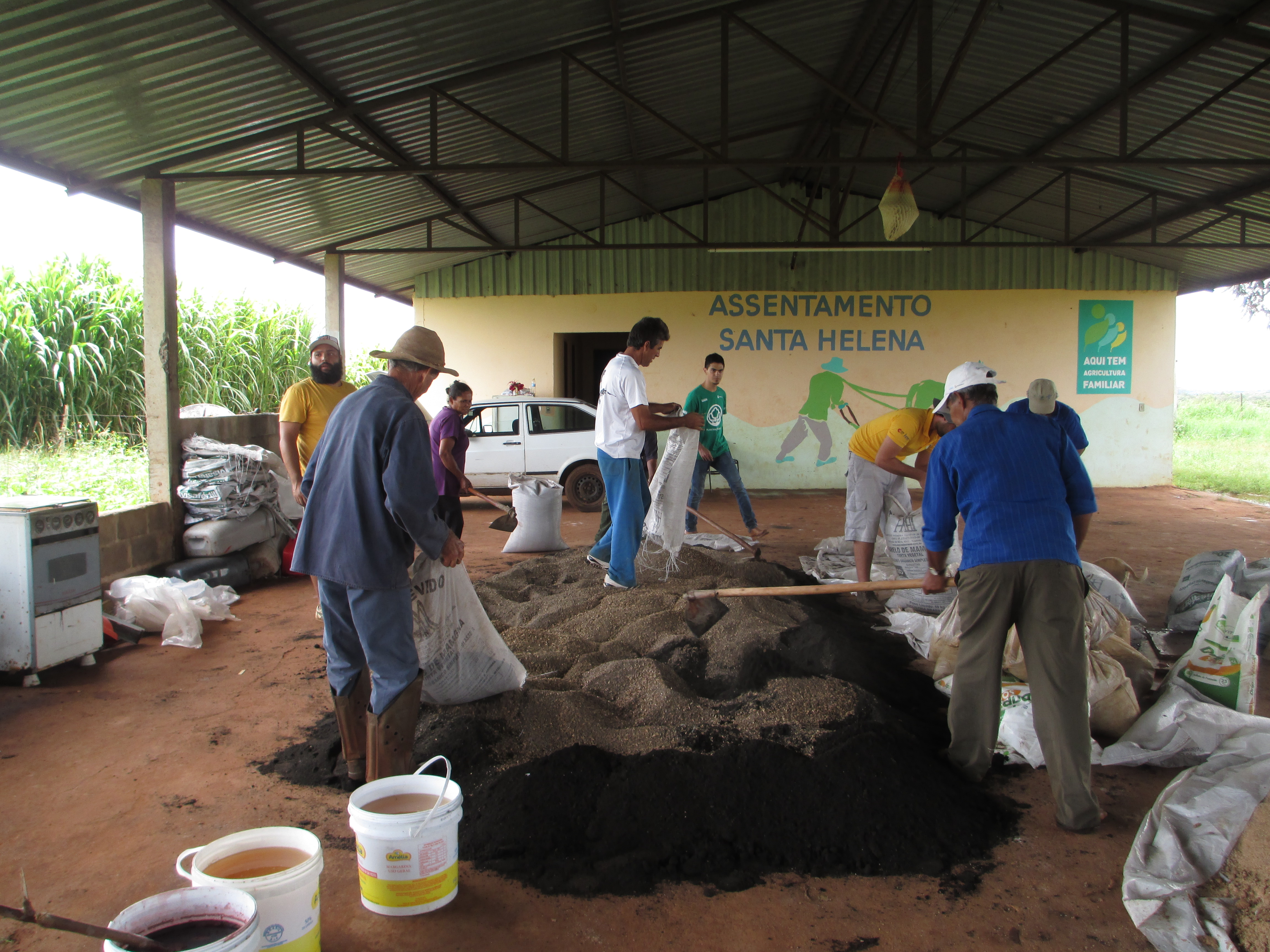 Os técnicos do Plantando Águas junto com Jonas Pereira da Silva Consultor de Agroecologia, projeto patrocinado pela Petrobras, realizaram oficina no Assentamento Santa Helena, em São Carlos (SP), para mostrar aos agricultores e familiares como preparar o bokashi. Parceiros do Núcleo de Pesquisa e Extensão Rural da Universidade Federal de São Carlos (NUPER) e Universidade de São Parlos e outros realizaram uma conversa no Eco Tibá para fortalecer a produção e comercialição de produtos agroecologicos de produtores familiares da região de São Carlos.