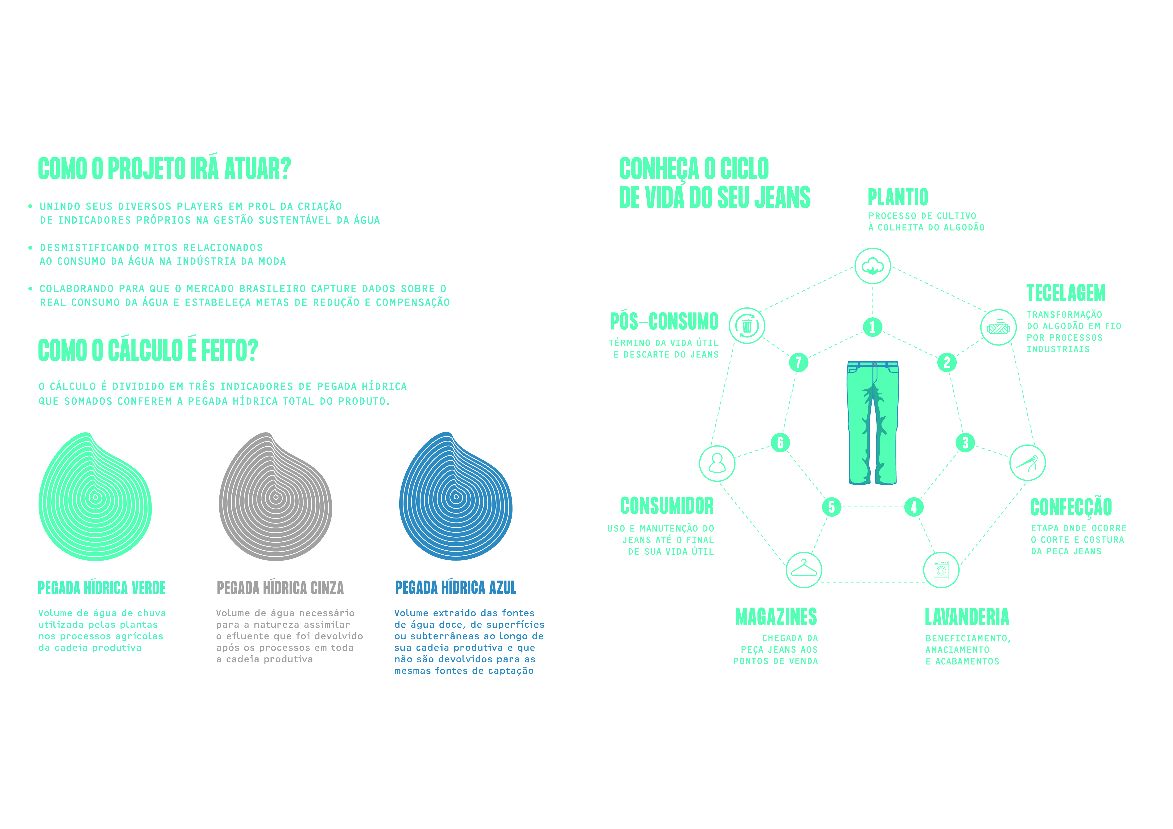 Em parceria com a H2O Company - consultoria especializada em promover a gestão de recursos hídricos - e a Iniciativa Verde, o projeto tem como objetivo promover transparência na cadeia da moda e fortalecer o setor, unindo os diversos atores da cadeia em prol da criação de indicadores próprios na gestão sustentável da água.