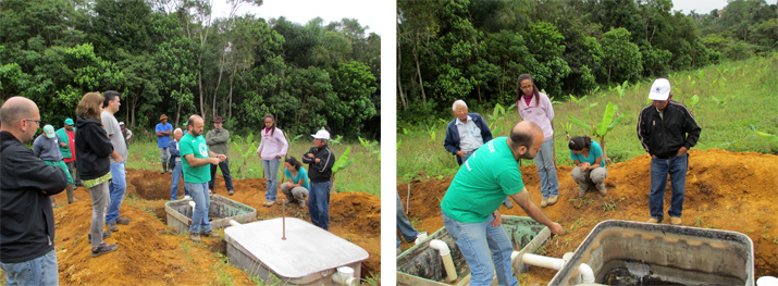 Com o apoio dos Conselhos Gestores das APAS Capivari-Monos e Bororé-Colônia, foram convidados moradores e órgãos do Território Rural paulistano para conhecerem a fossa séptica biodigestora (destinada ao tratamento do esgoto sanitário doméstico), que inclusive permite o uso do efluente como adubo orgânico.