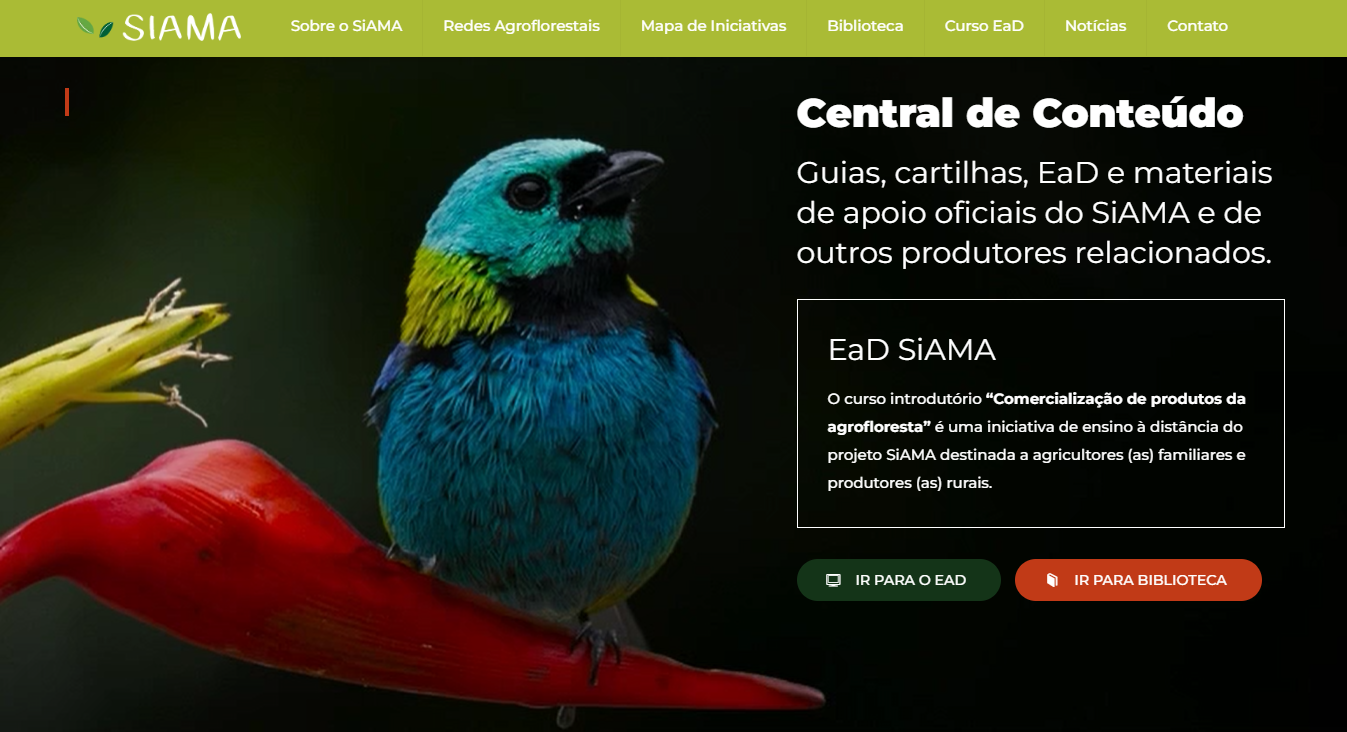 Navegue pelo siama.eco.br e saiba mais sobre sistemas agroflorestais e o trabalho do SiAMA.
