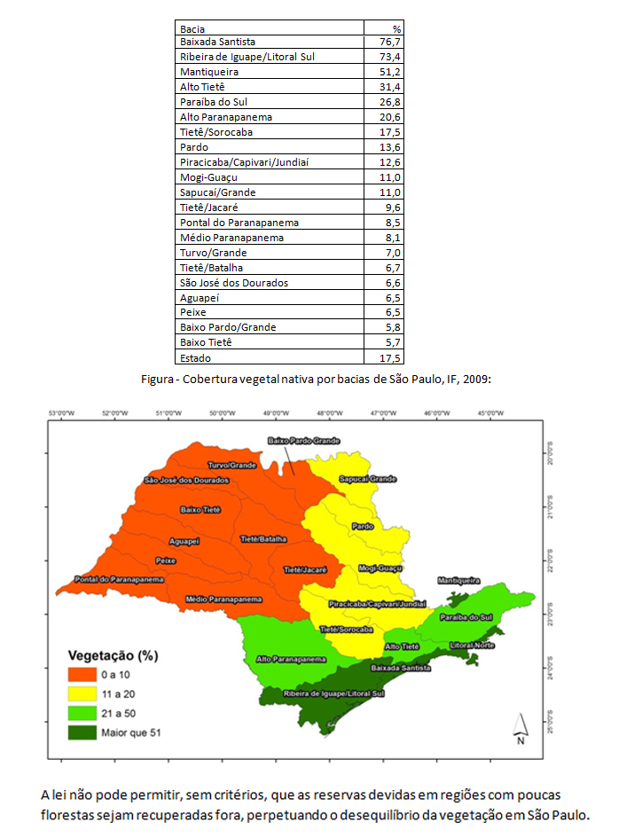 Tabela 1 - Cobertura vegetal nativa por bacias de São Paulo, IF, 2009:
