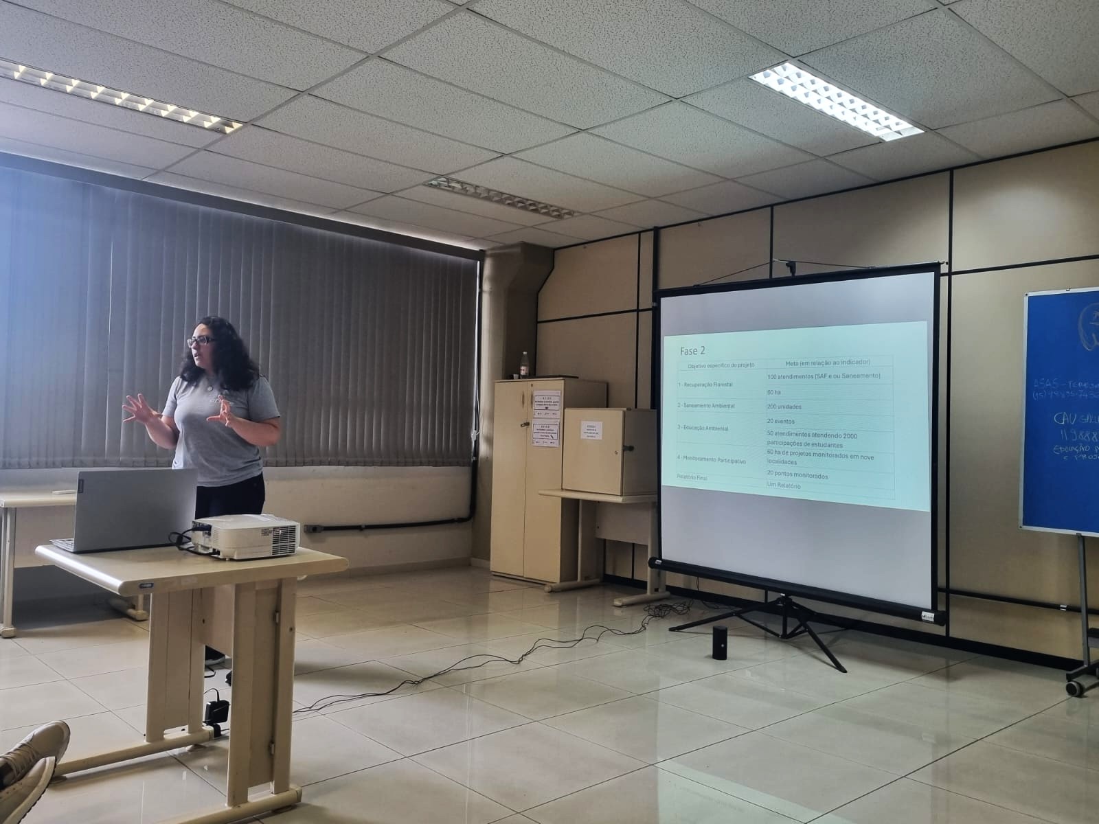 Jaqueline Souza, gestora ambiental da Iniciativa Verde, apresenta história do Plantando Águas