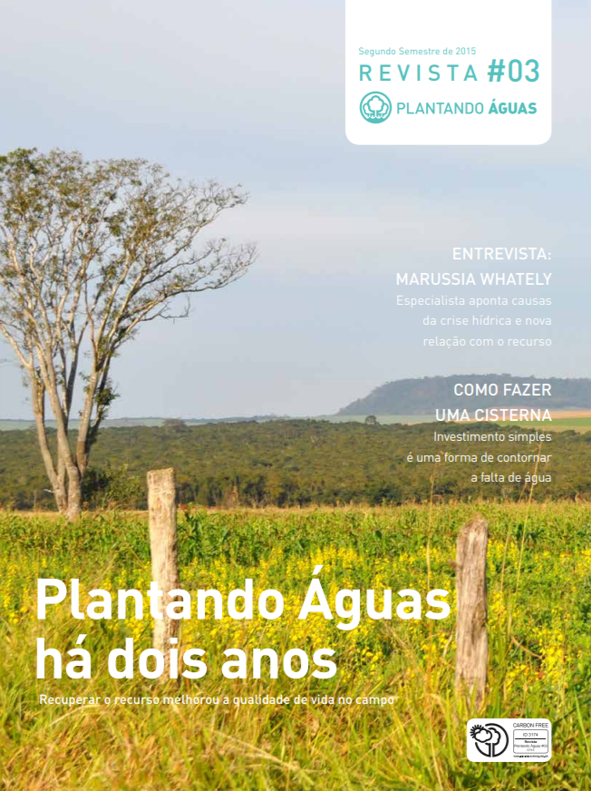 Esta publicação faz parte do projeto Plantando Águas, realizado pela ONG Iniciativa Verde em parceria com cerca de 20 instituições e patrocinado pela Petrobras. Nesta edição, de julho de 2015, há um passo-a-passo de como fazer uma cisterna, entrevista exclusiva com a coordenadora da Aliança pela Água Marussia Whately, matéria especial detalhando tudo o que foi feito durante os dois anos do projeto, entre outros. Leia na íntegra.