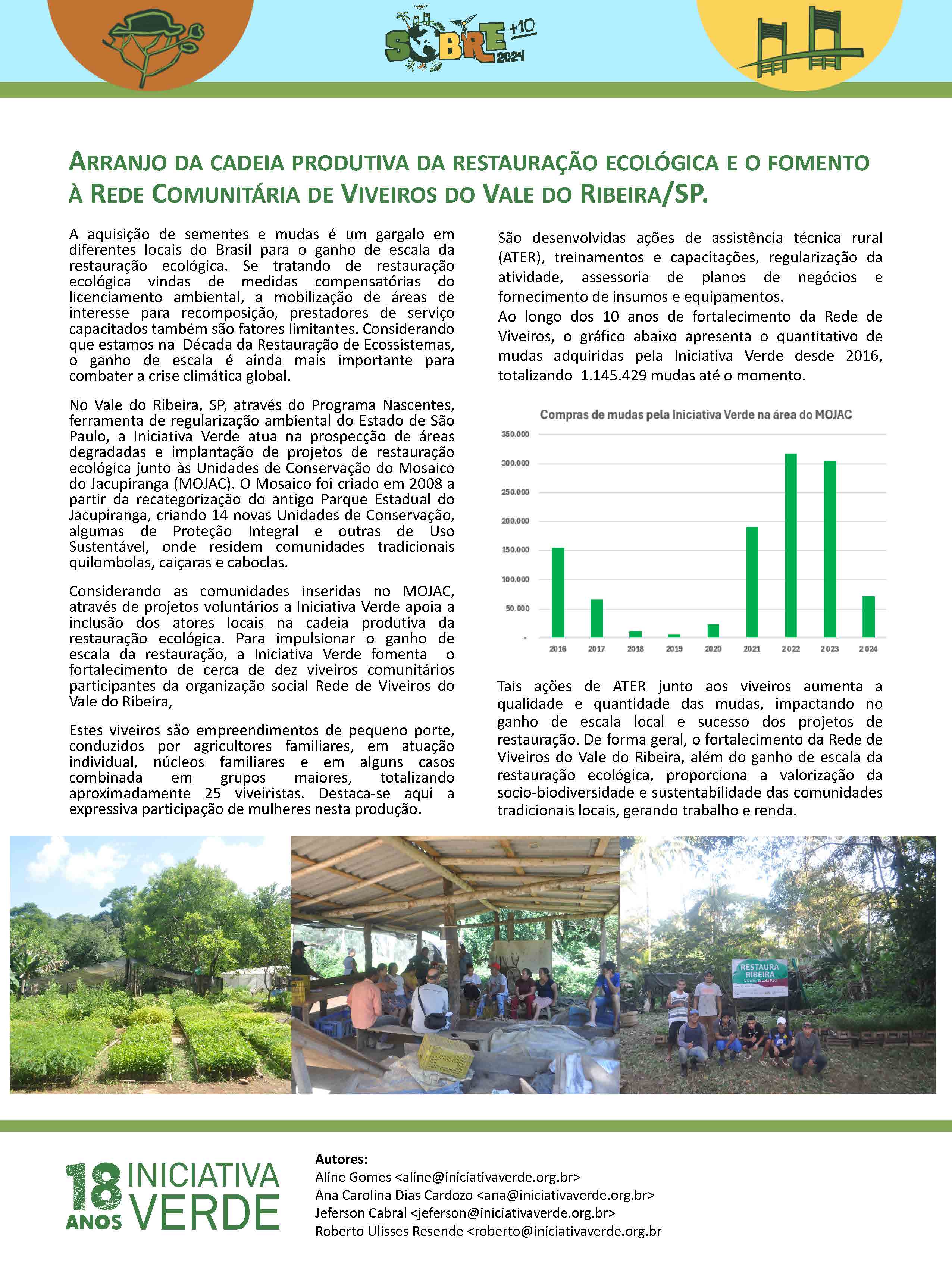 Arranjo da cadeia produtiva da restauração ecológica e o fomento à rede comunitária de viveiros do Vale do Ribeira (SP)