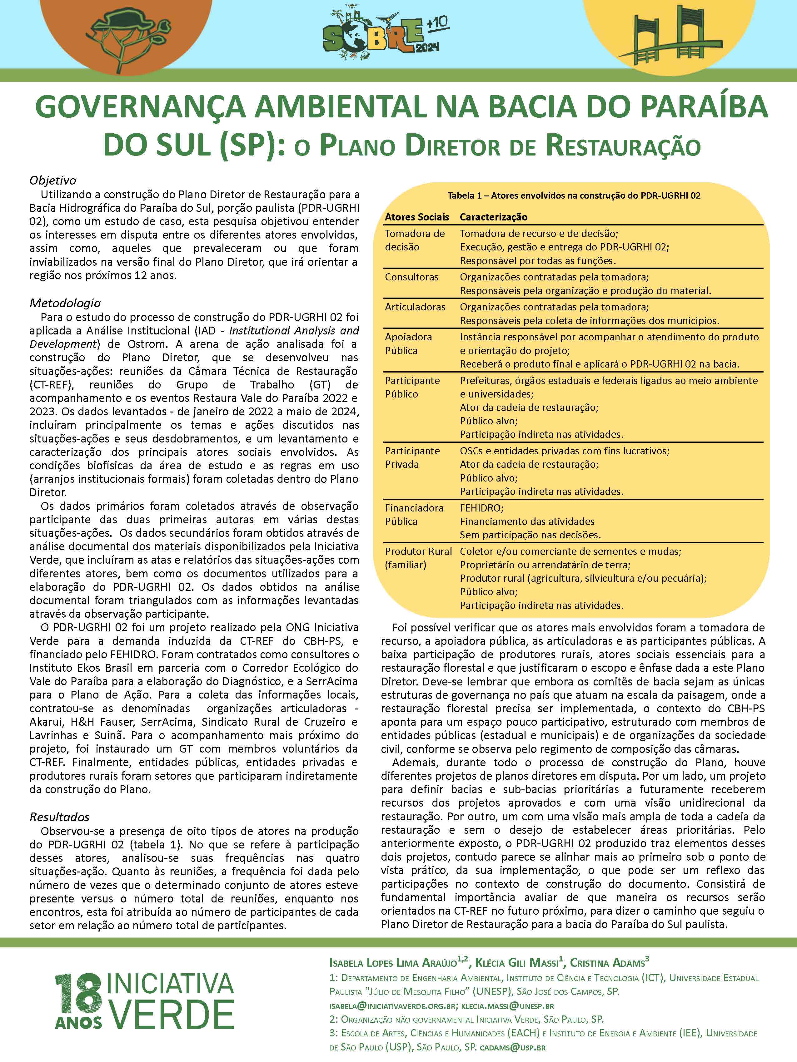 Governança ambiental na bacia do Paraíba do Sul (SP): O Plano Diretor de Restauração