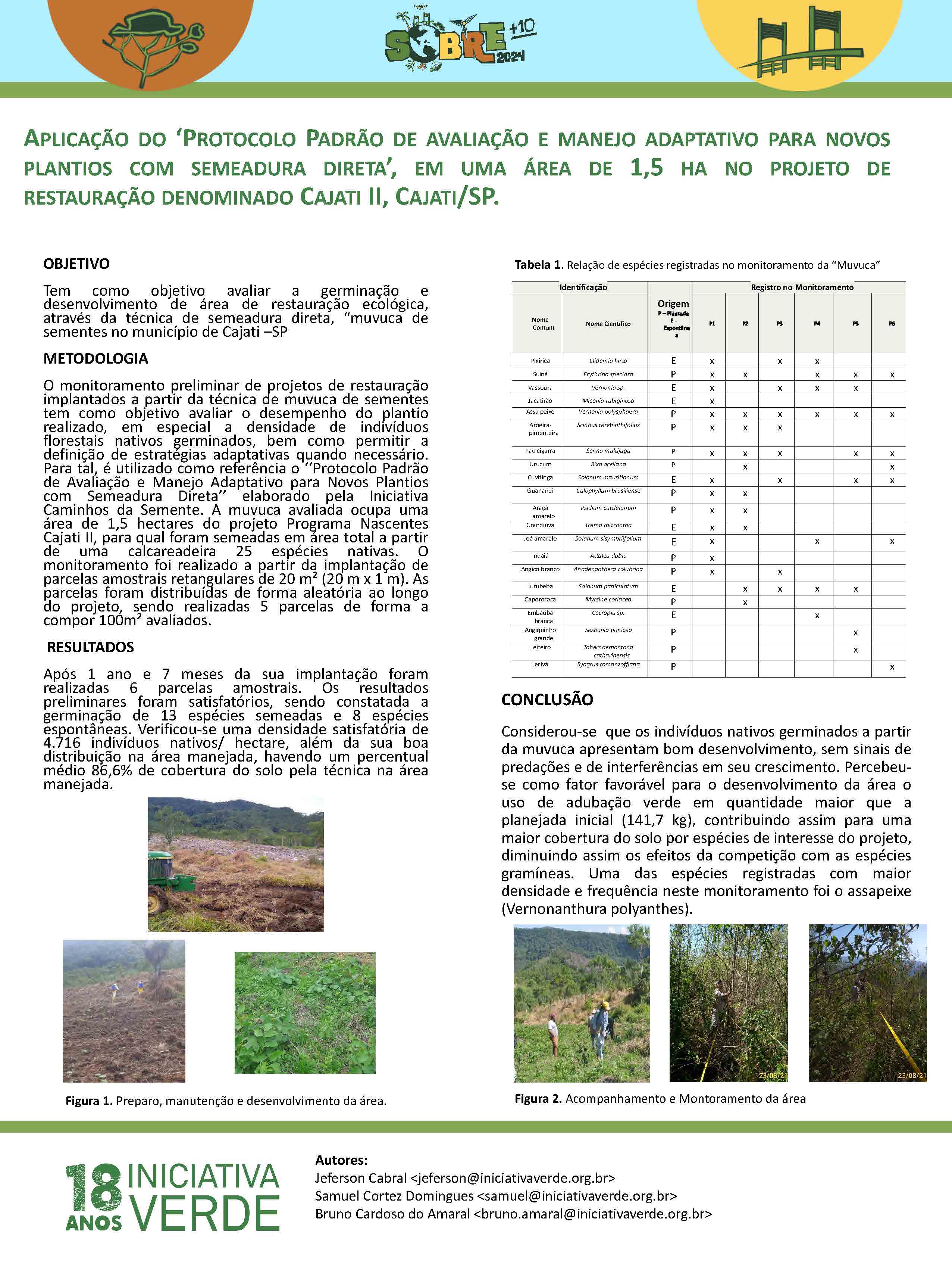 Tem como objetivo avaliar a germinação e desenvolvimento de área de restauração ecológica, através da técnica de semeadura direta, “muvuca de sementes no município de Cajati –SP